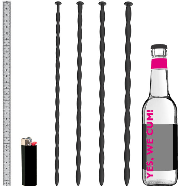 Jeder der Dilatoren ist 30cm lang, ihr könnt also richtig in Regionen Eurer Prostata wandern gehen – durch die enorme Flexibilität des sehr weichen Silikons gibt’s da ja quasi keine Grenzen der Vernunft… Und ihr habt genug Raum zum Festhalten und Steuern der kleinen Freudenspender.